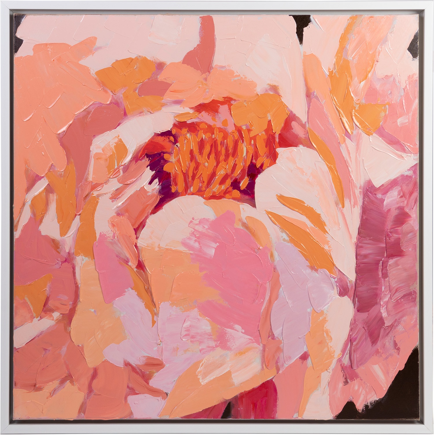 Brighten your wall with this white framed blooming flower art. Textured Oil paint.
